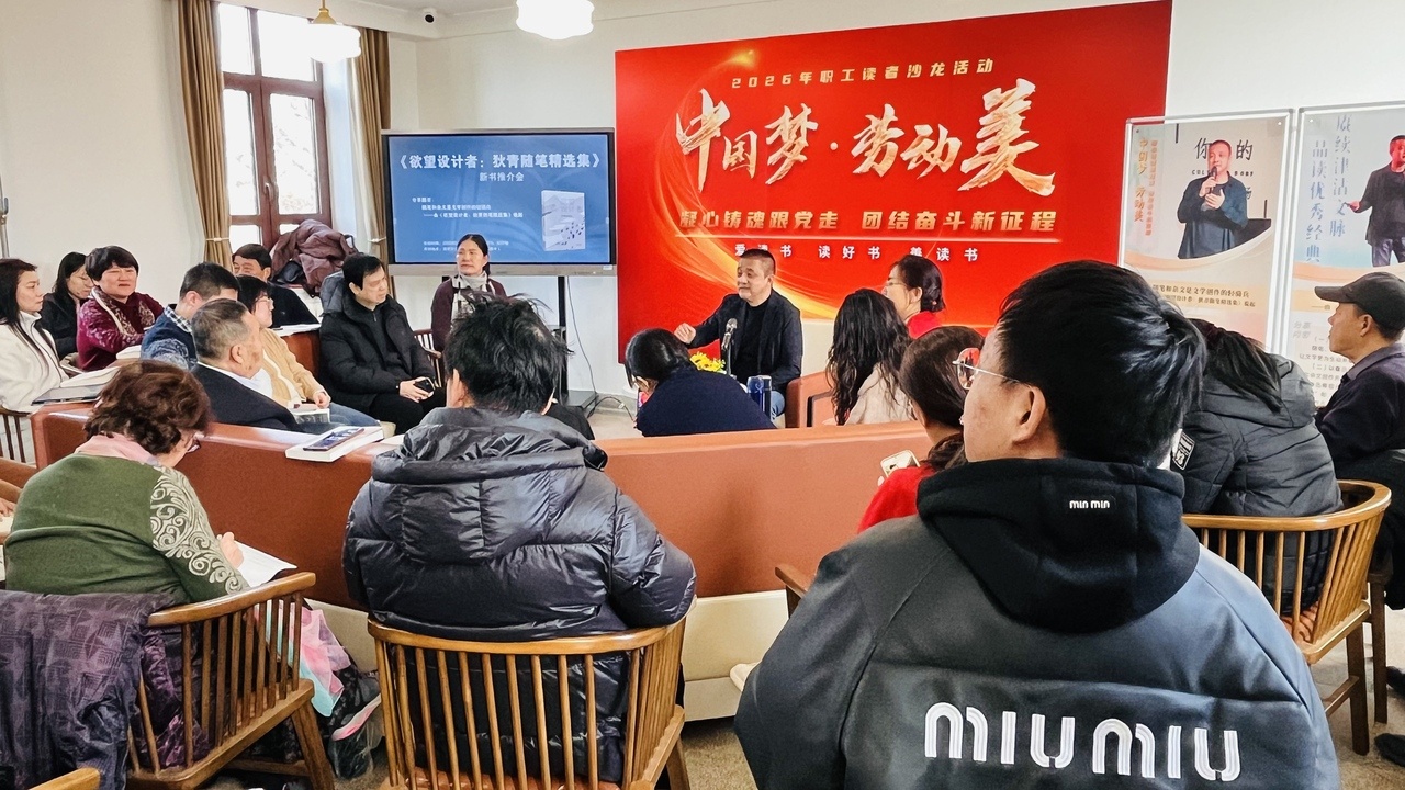 2月1日,恰逢《全民阅读促进条例》施行之日,由天津市总工会主办、天津市职工宣传教育文化中心承办的2026年首场职工读者沙龙活动在第二文化宫职工图书馆举办。本次活动以《欲望设计者:狄青随笔精选集》新书发布为契机,特邀文坛名家狄青与现场50余位职工读者围坐畅谈,开启新一年的书香之旅。